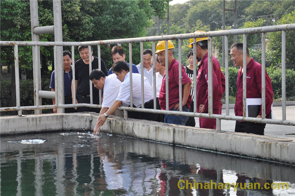 2016年7月26日,阜陽(yáng)市環(huán)保局局長(zhǎng)李哲、副局長(zhǎng)史春在環(huán)保局相關(guān)科室負(fù)責(zé)人及潁東區(qū)環(huán)保局領(lǐng)導(dǎo)陪同下,蒞臨昊源公司檢查、指導(dǎo)工作。昊源公司黨委書(shū)記、董事長(zhǎng)凡殿才,副總經(jīng)理高玉磊、張海生及相關(guān)部門(mén)負(fù)責(zé)人陪同。
