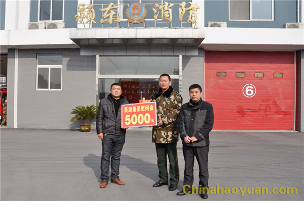 高明林將飽含昊源職工深切之情的慰問金轉(zhuǎn)交給隊領(lǐng)導,并轉(zhuǎn)達了公司黨政領(lǐng)導對穎東消防官兵的親切慰問。